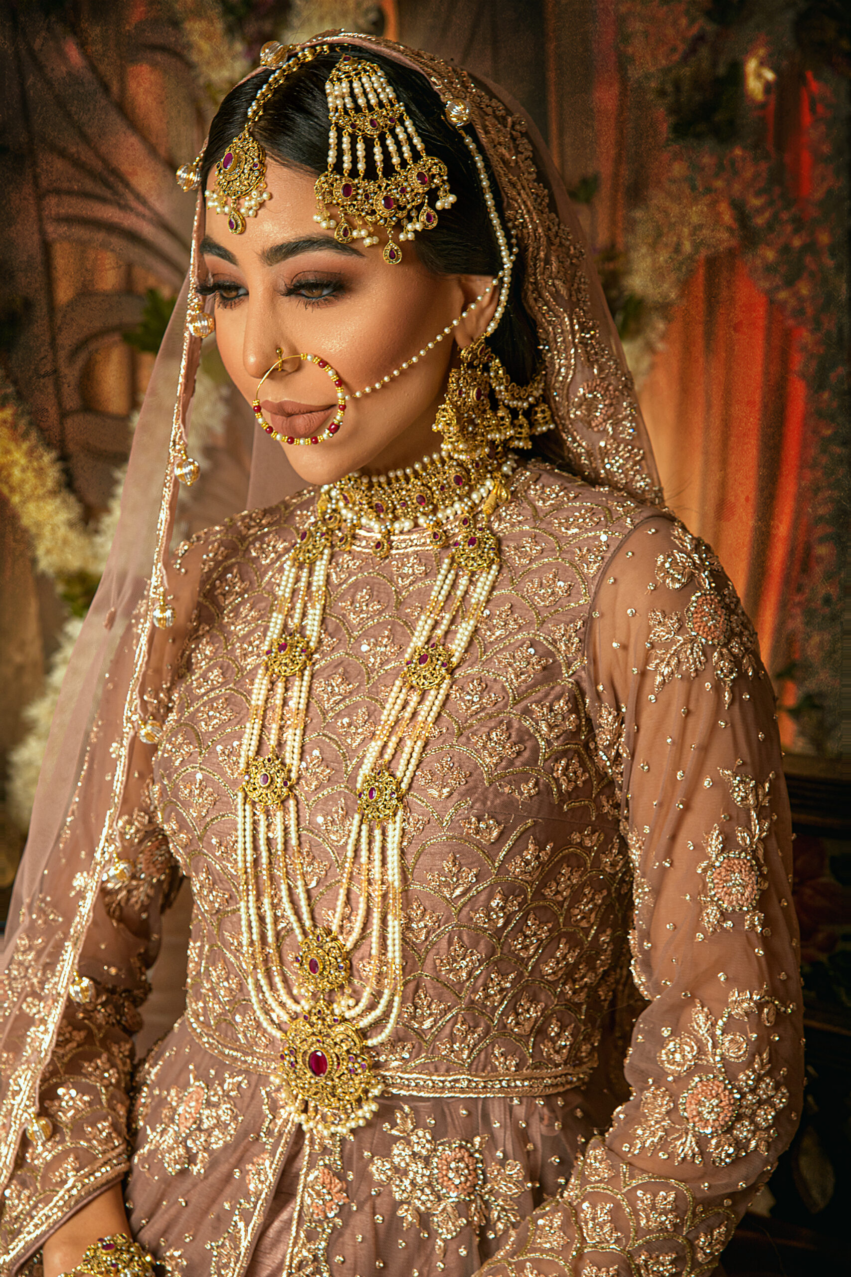 Set Includes : Tikka, jhummar, sahara earrings , choker, haar , 1 handpiece