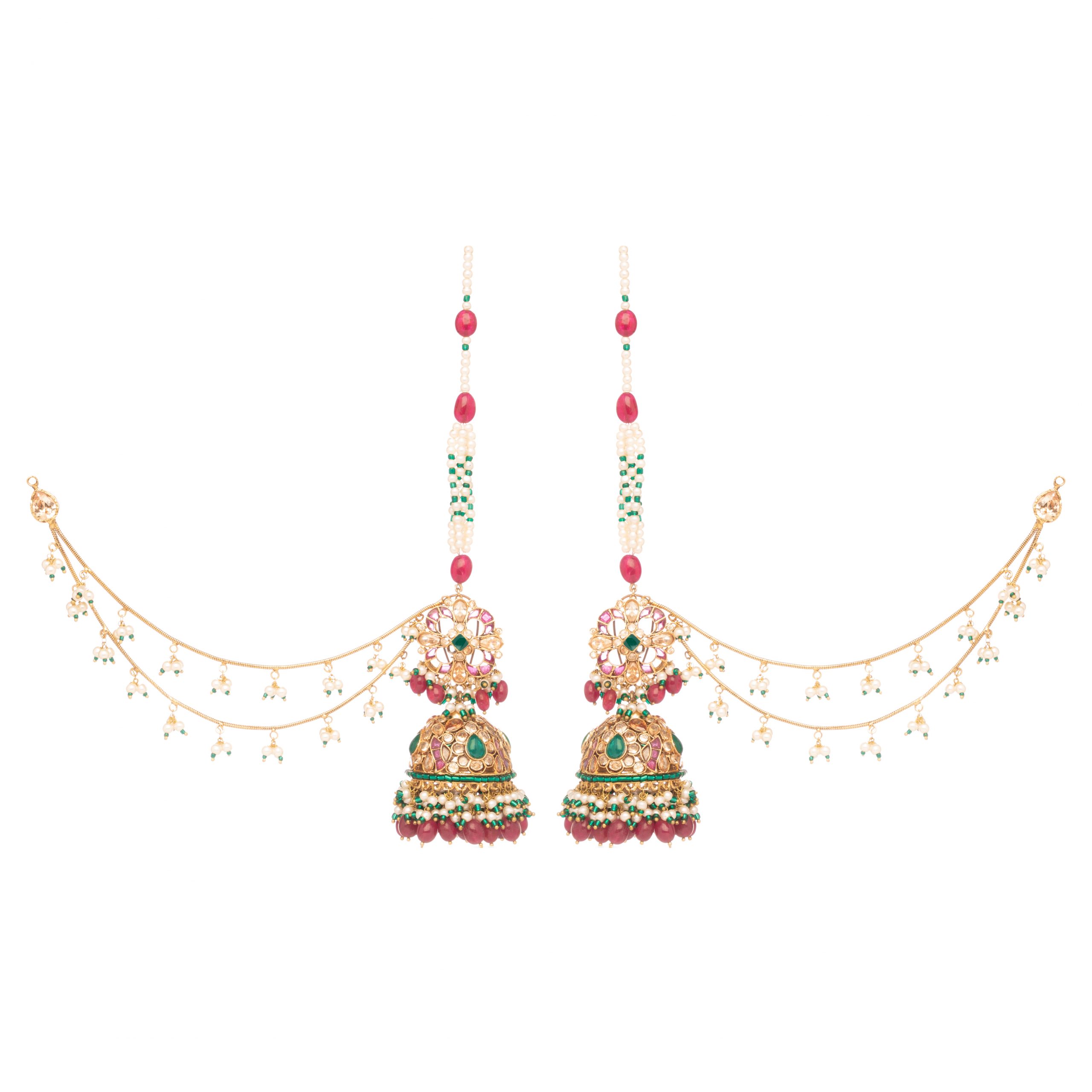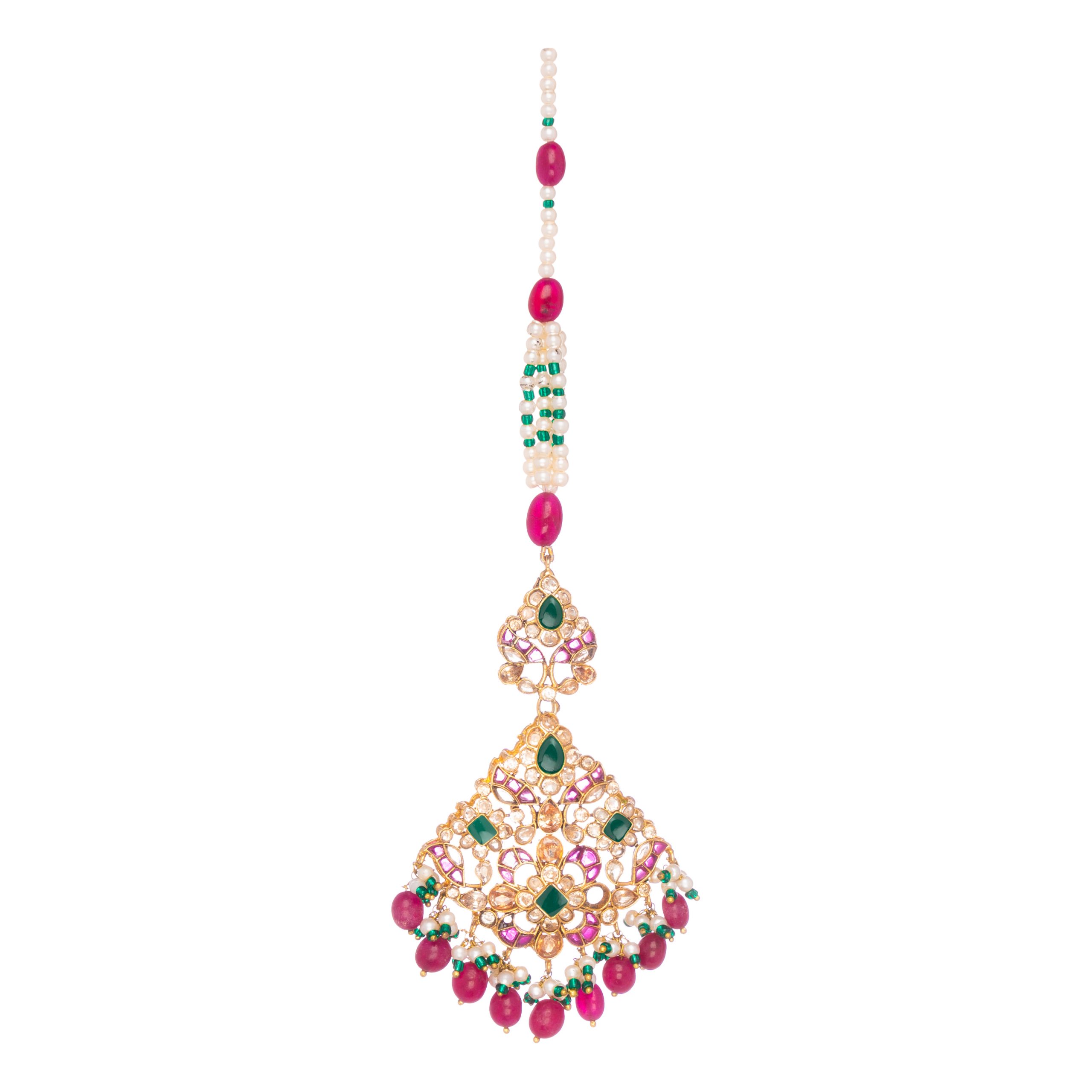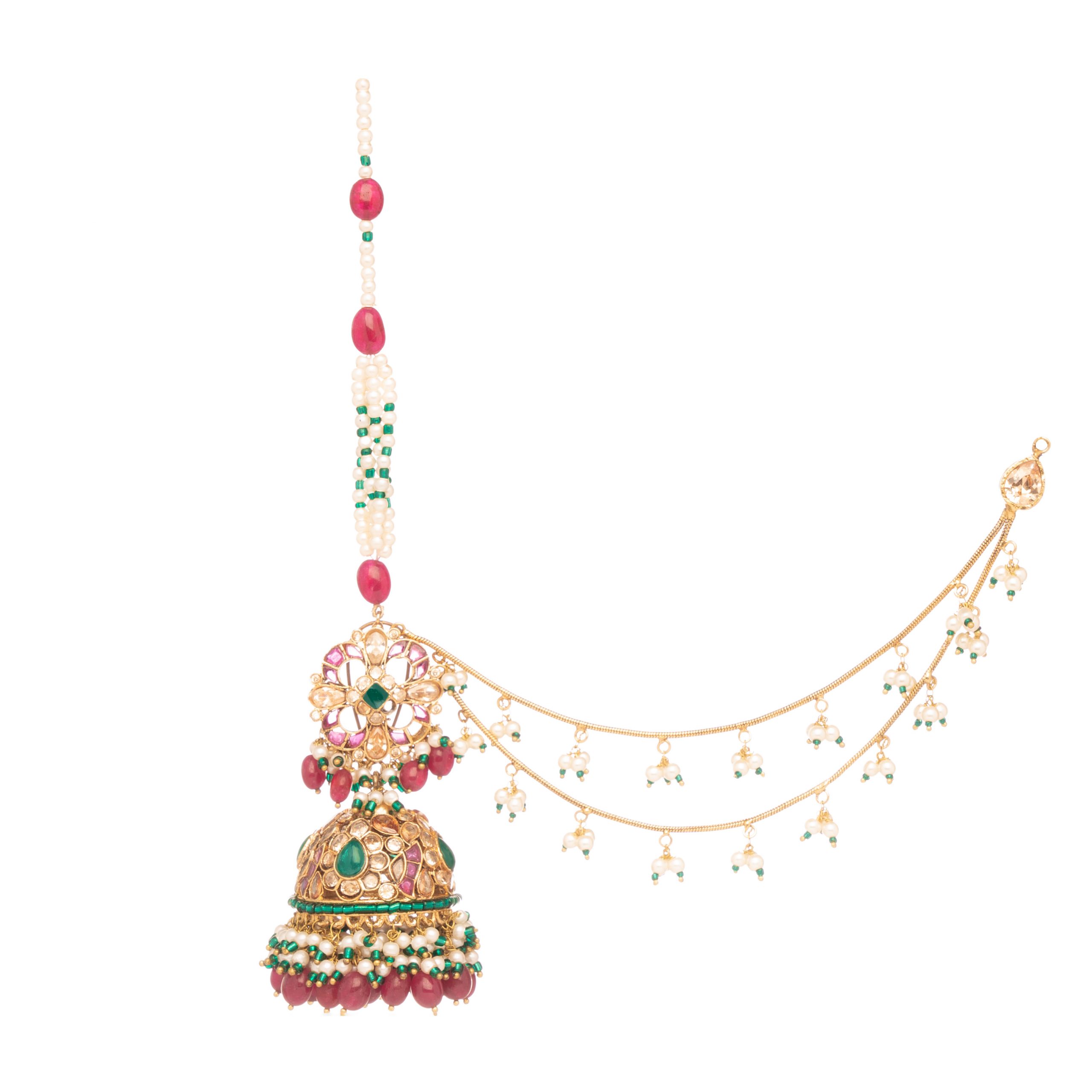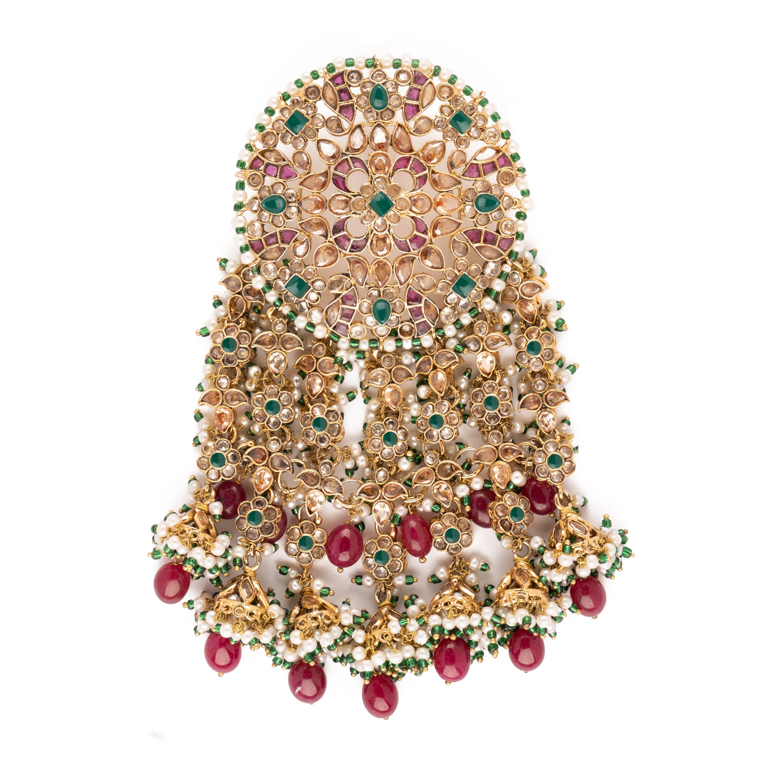 Set Includes: Tikka, jhummar, earrings, choker, rani haar.