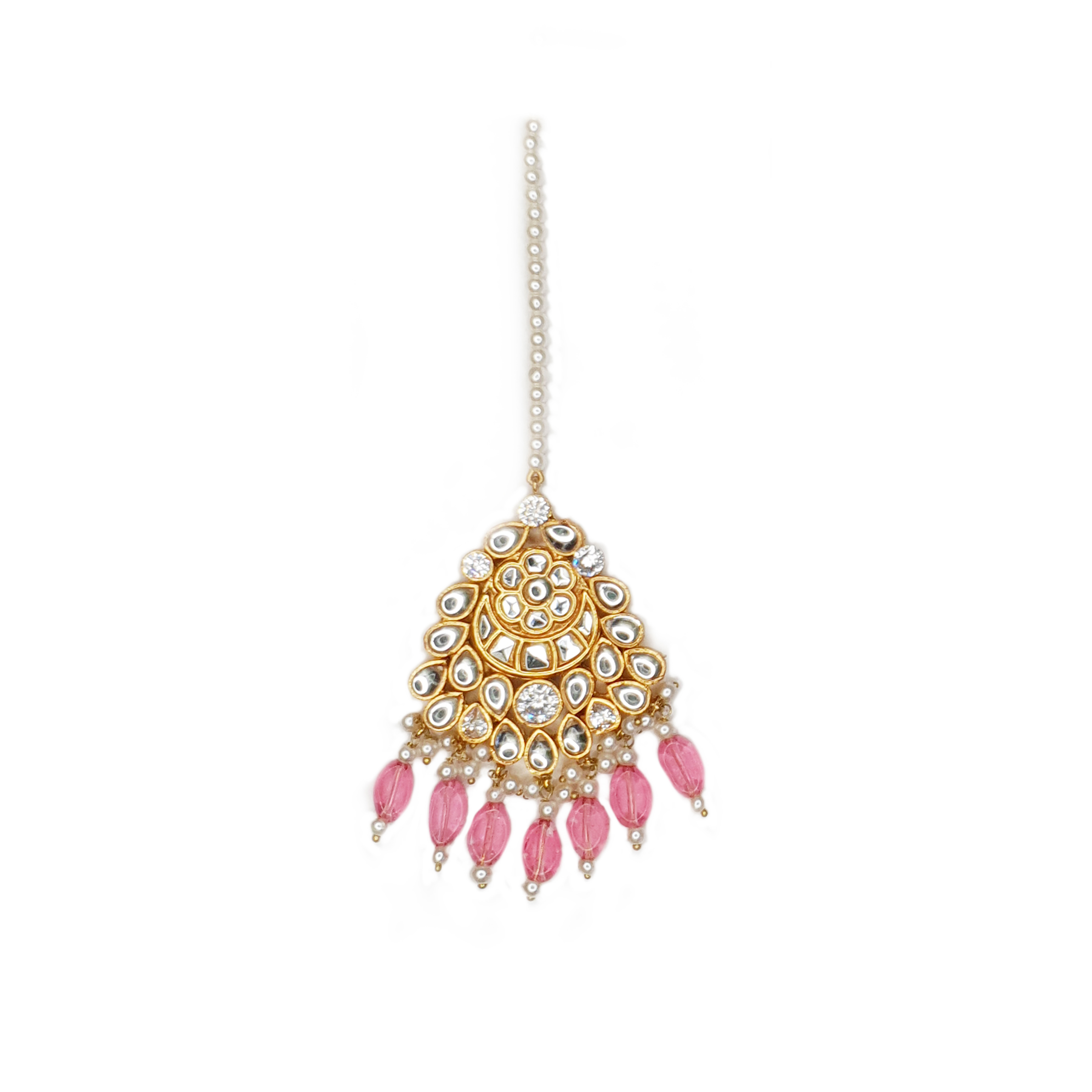 Set Includes : Tikka, jhummar, necklace, earrings, nose clip.