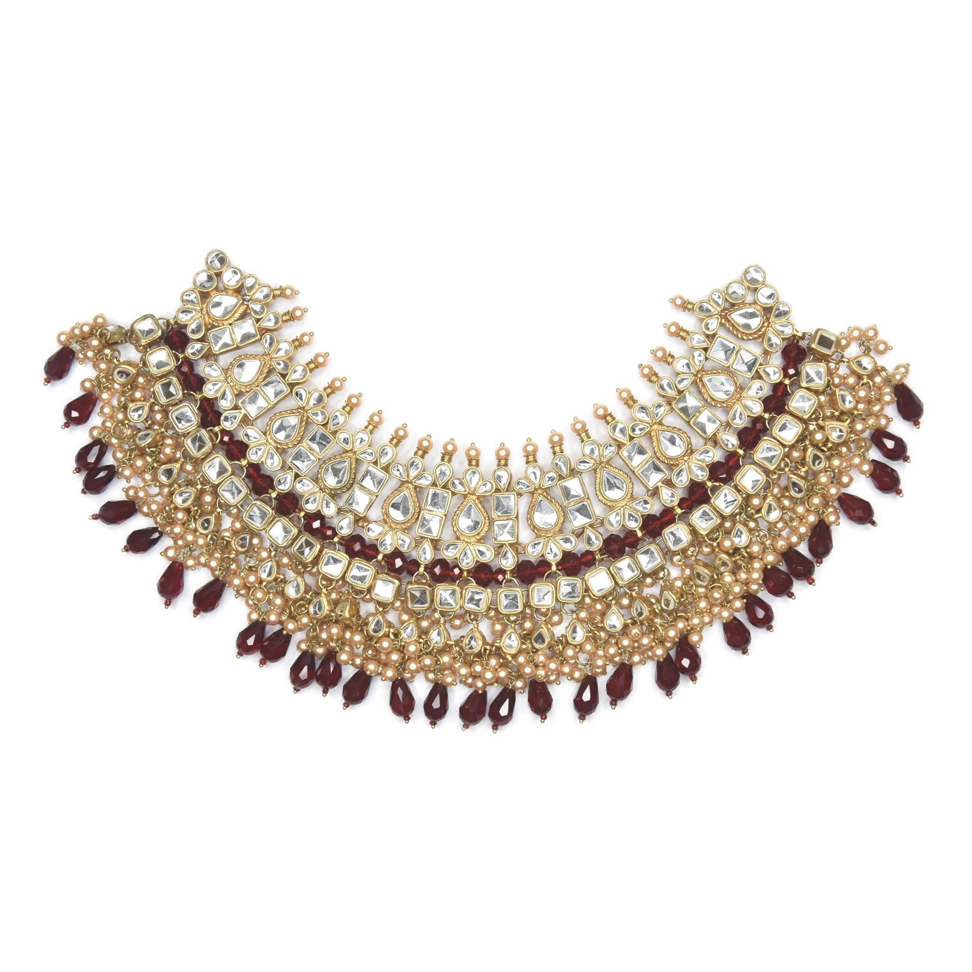 Images Shows: ‘Dark red’ large beading with’Ivory’ pearls on ‘Antique Gold’ plating.