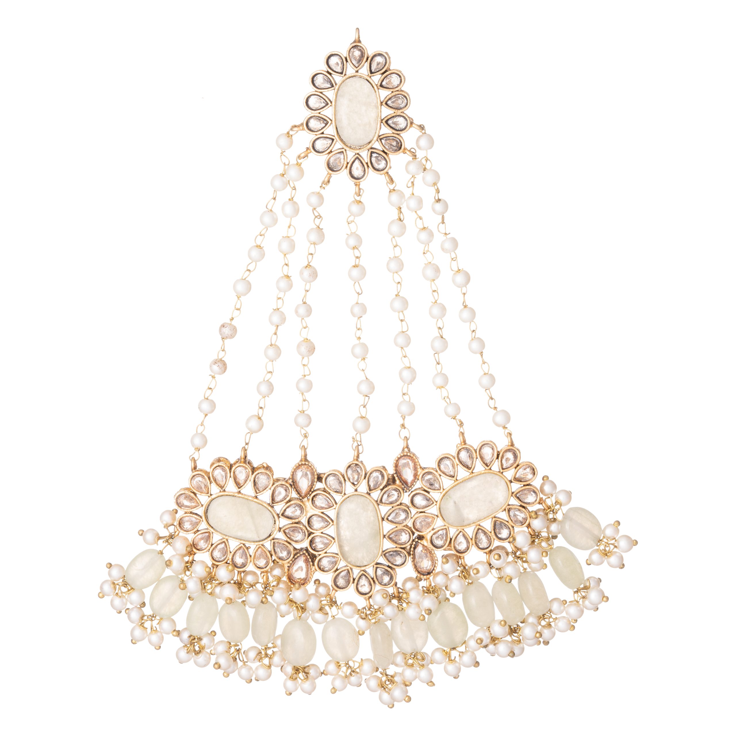 Dense plated full polki stoned design finished with luxury Japanese rocks fringing the entire set.