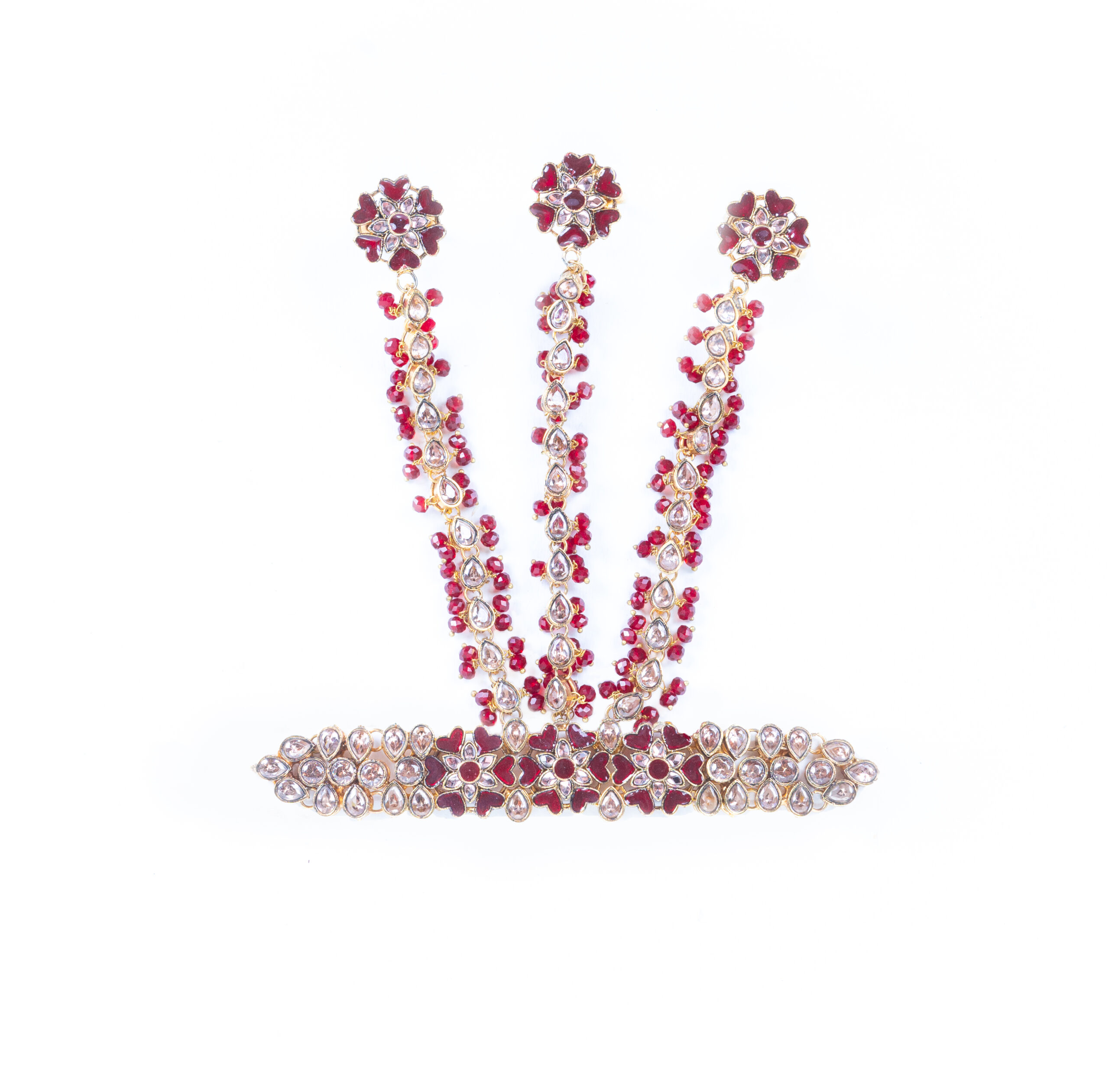 Luxurious full kundan handpiece is fully adjustable wrist chain and rings, comes standard with 3 rings.