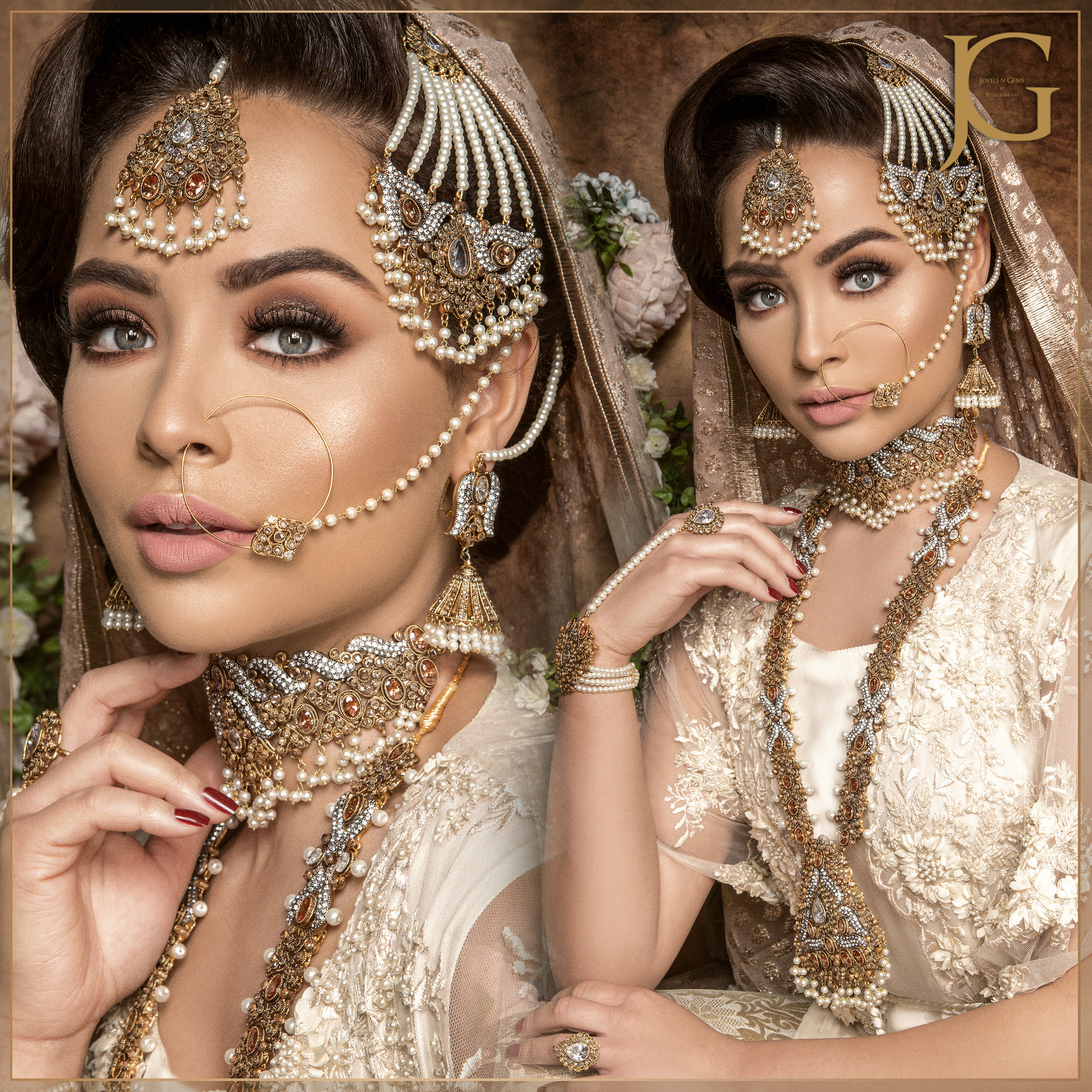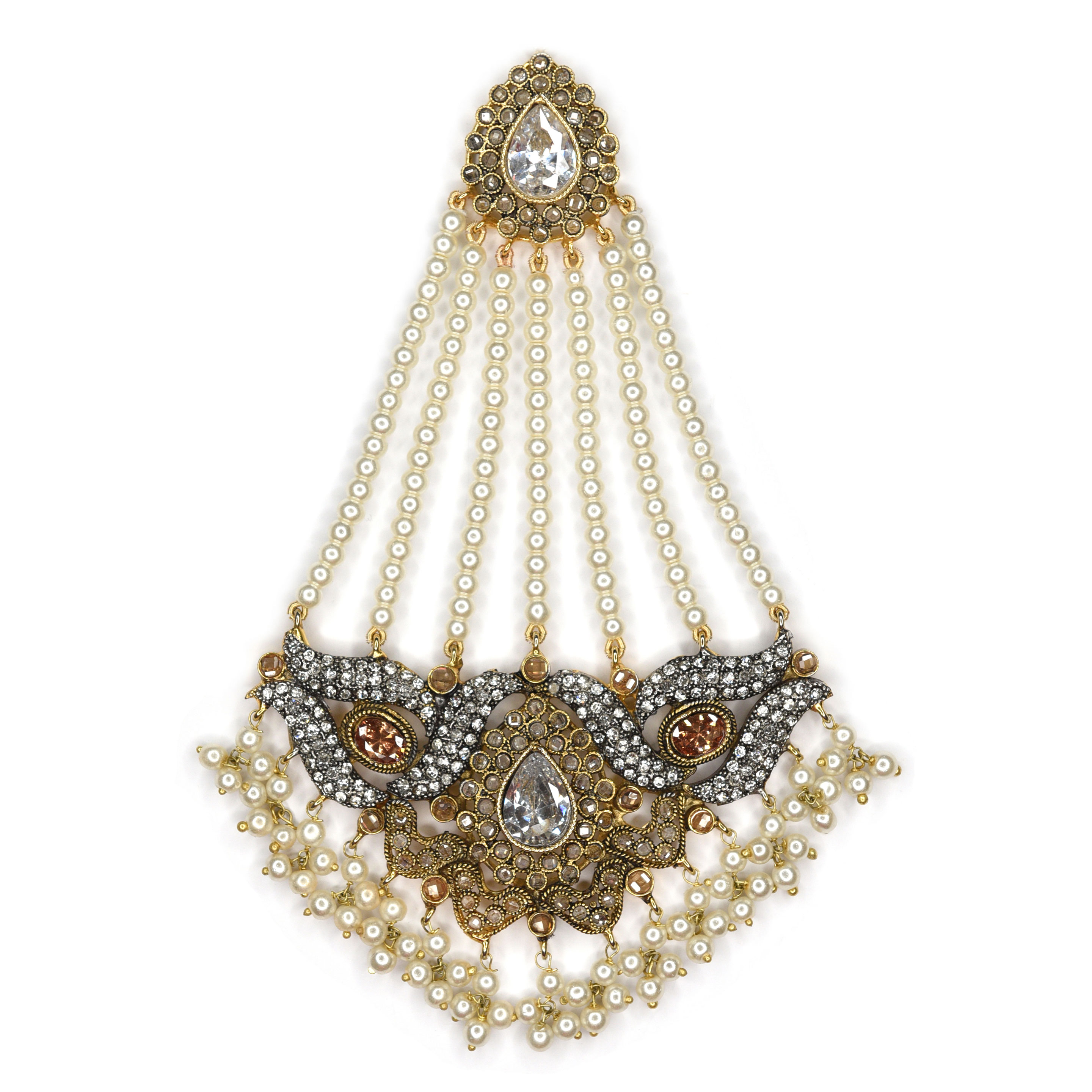 Image shows ‘Clear/Champagne’ stones on ‘Antique Gold’ plating.