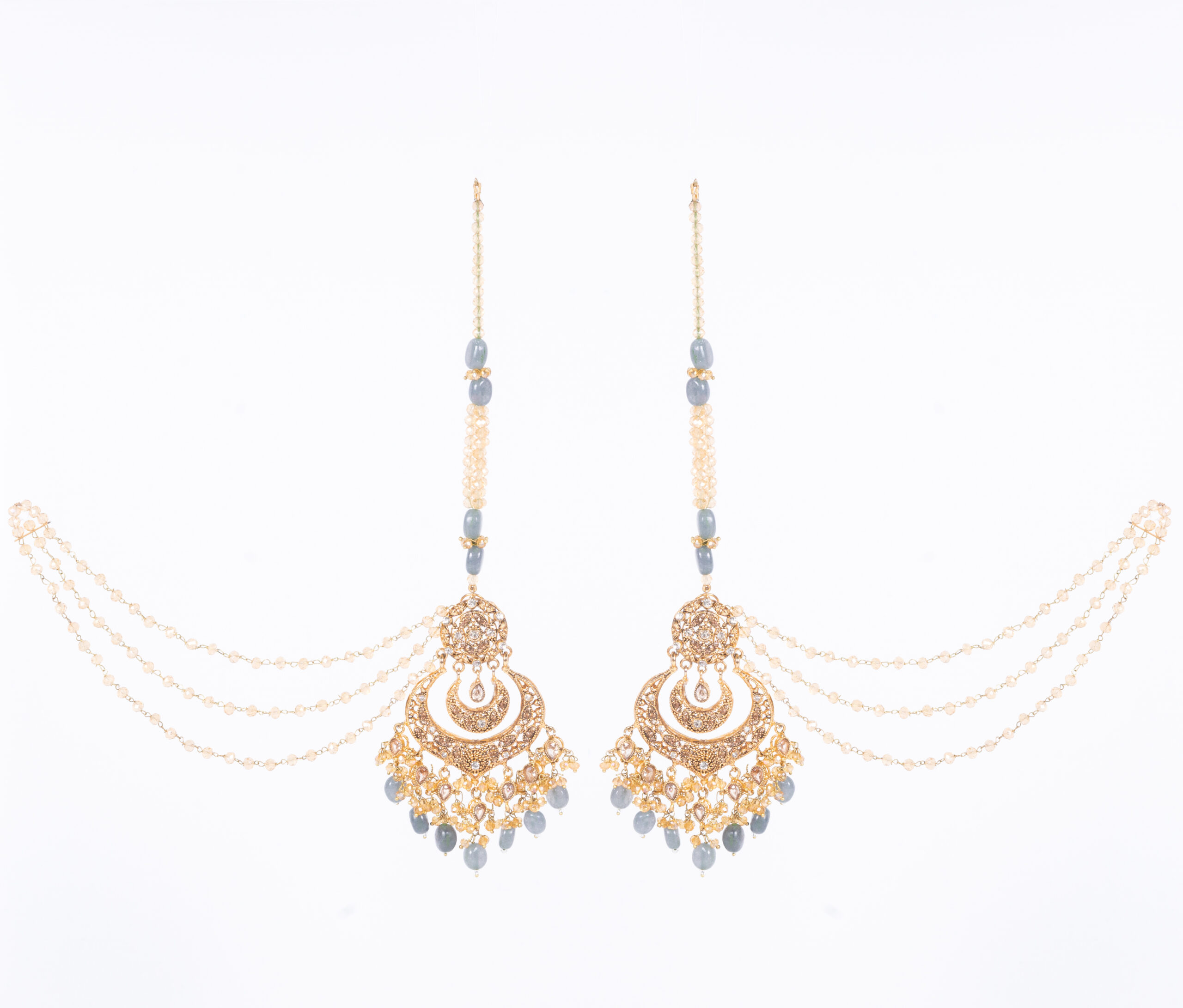 Exclusive temple inspired intricate plating in a 22k gold plate fringed with real semi precious stones.