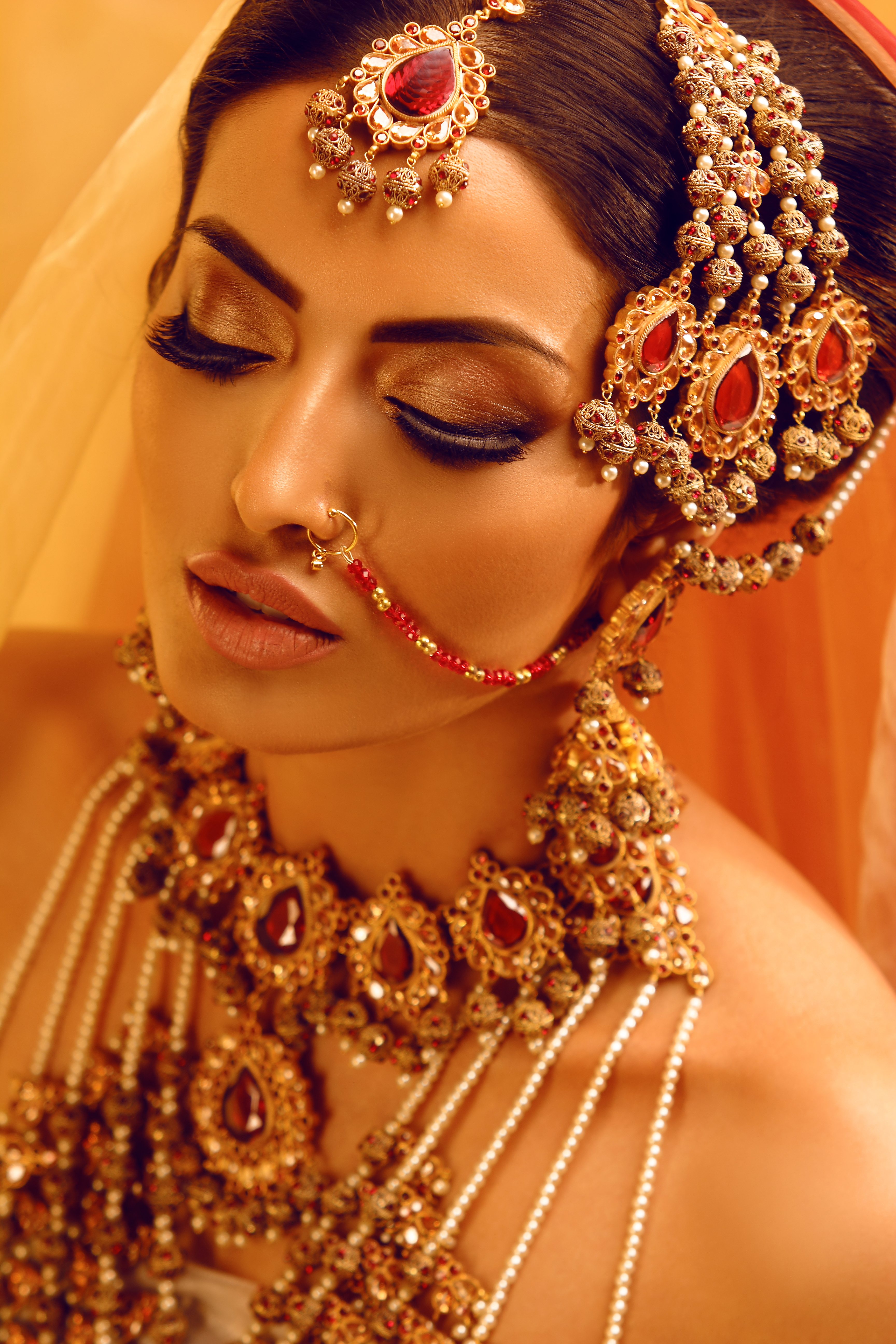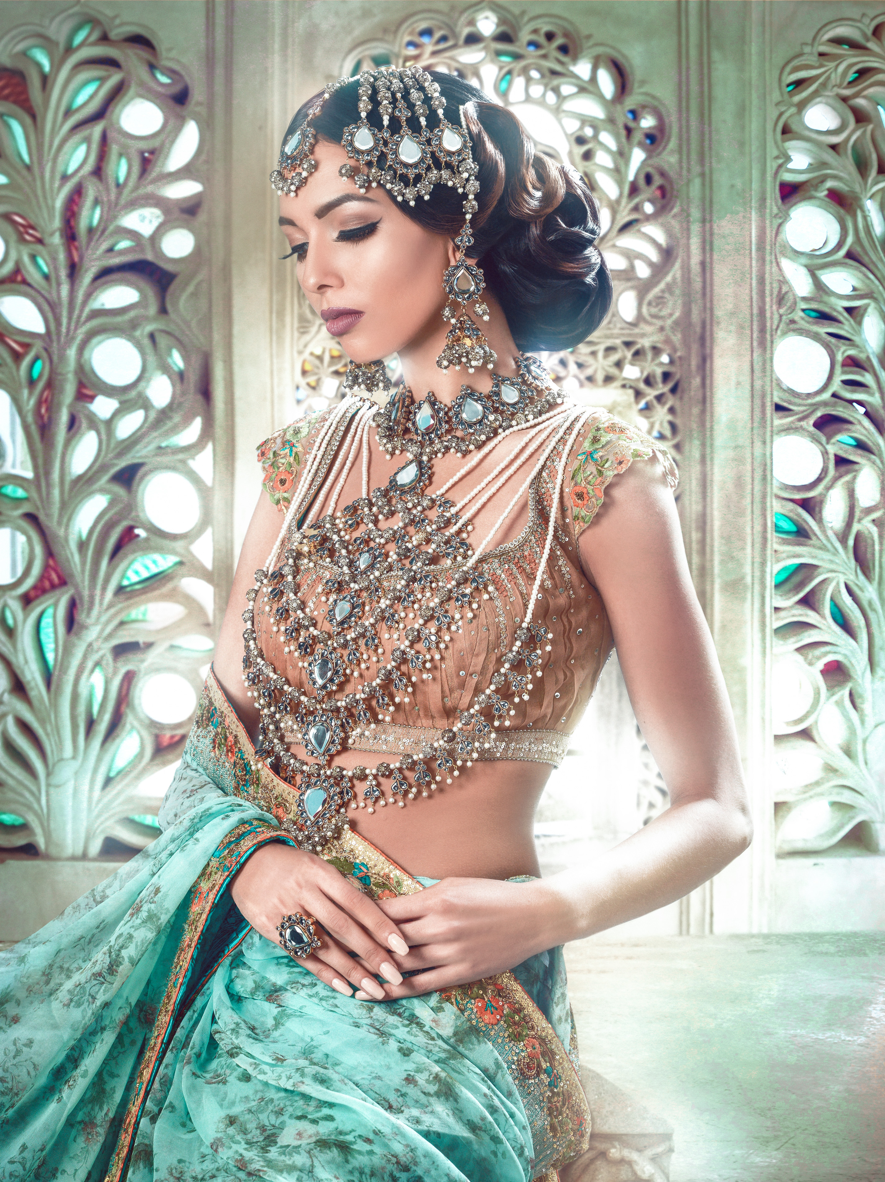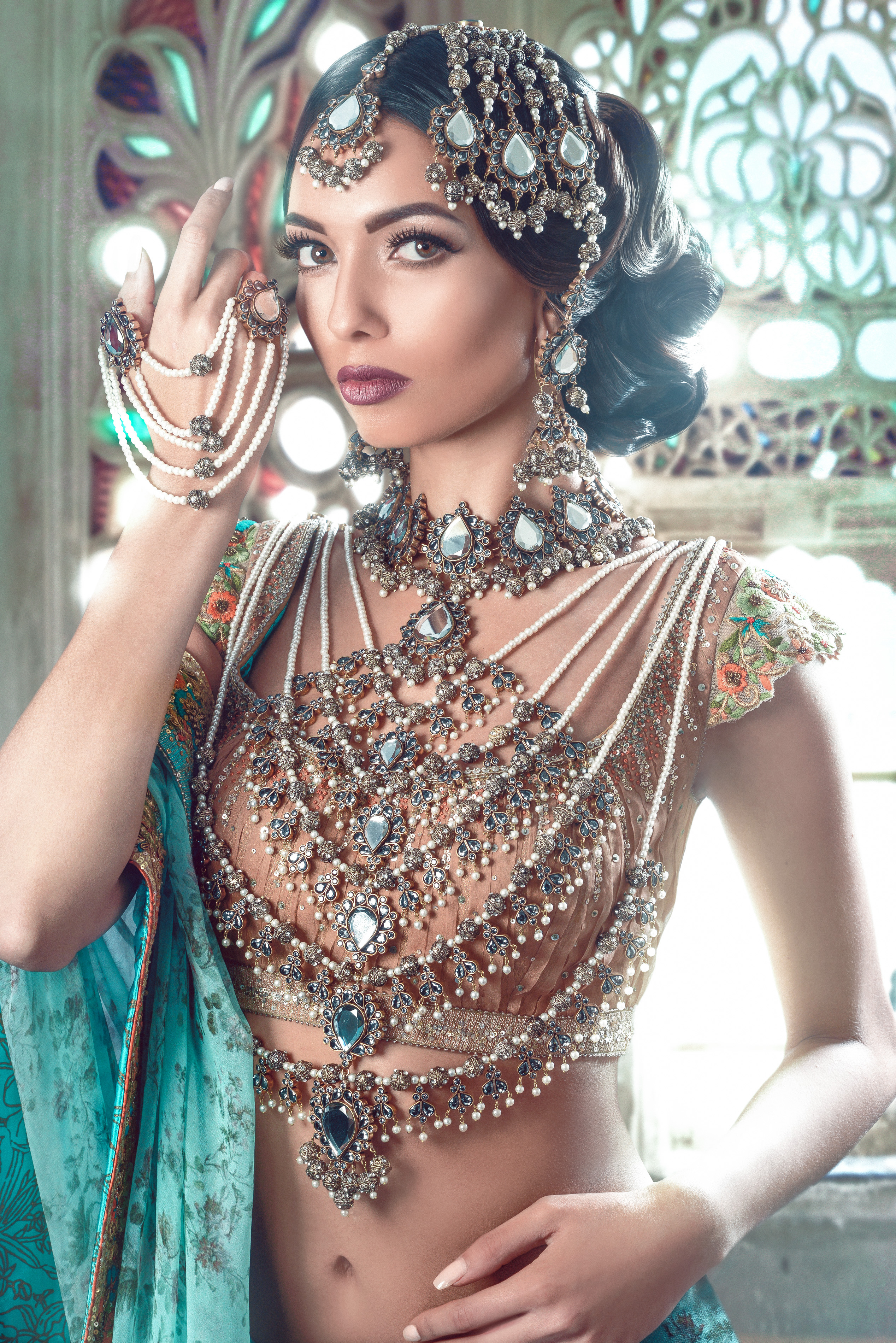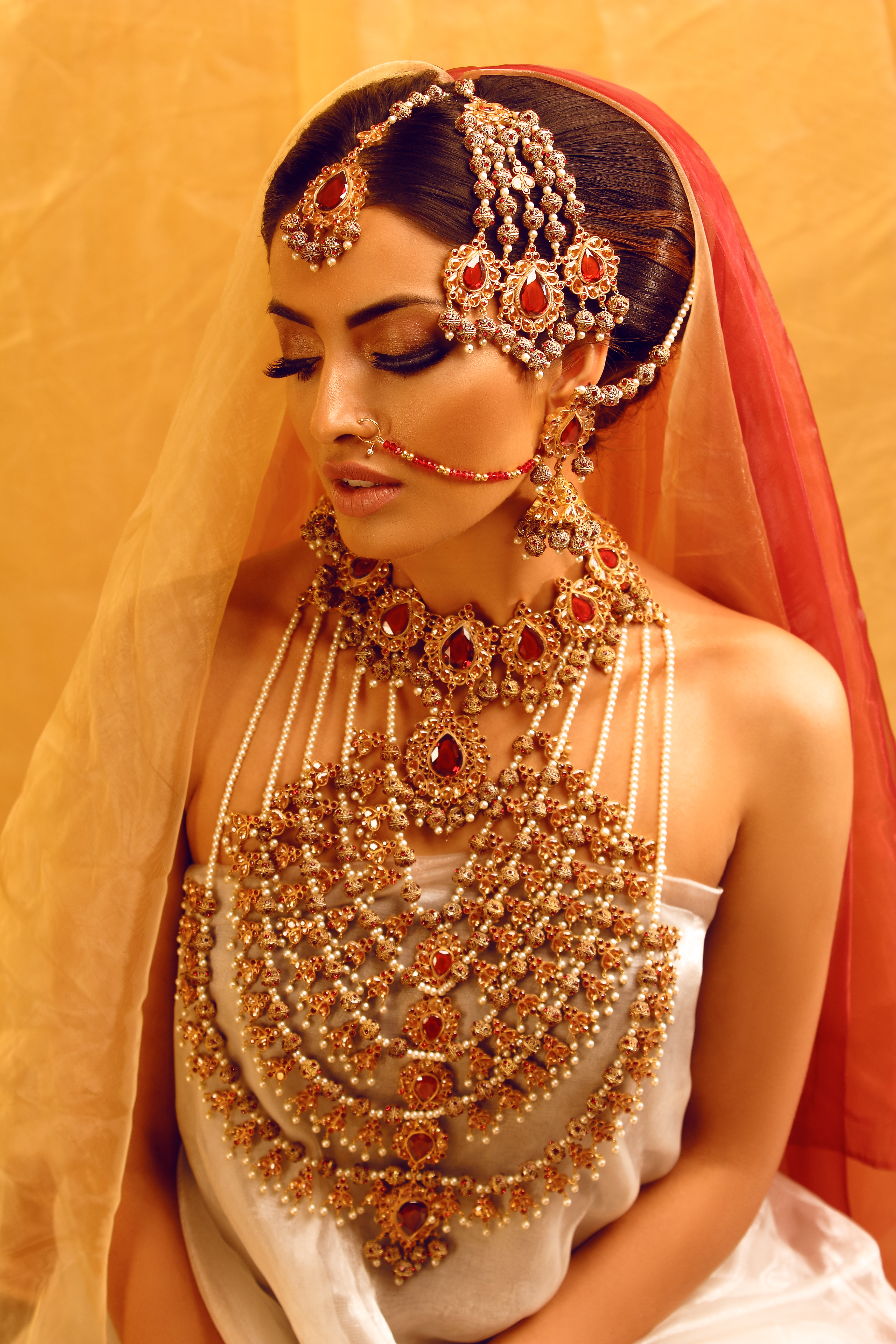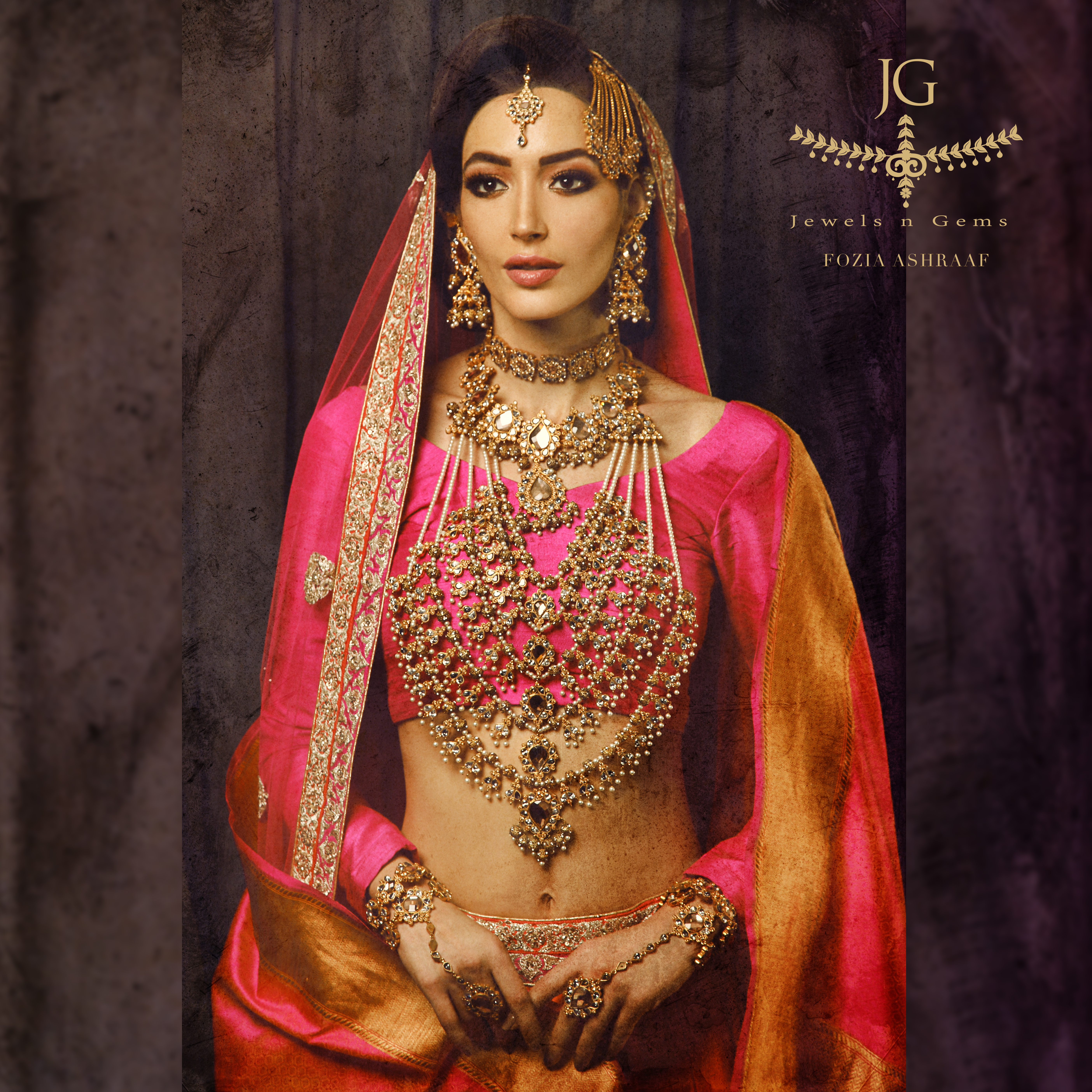 Collection Includes: Tikka, jhummar, necklace, 5 row rani haar, earrings, 1 handpiece .