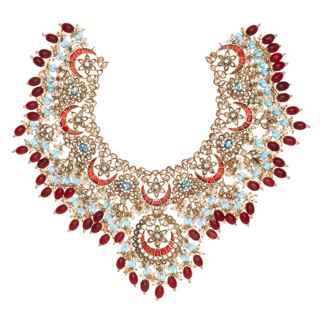 Image Shows: ‘Ruby/Topaz Blue’ Stones with ‘Ruby/Topaz Blue’ beading.