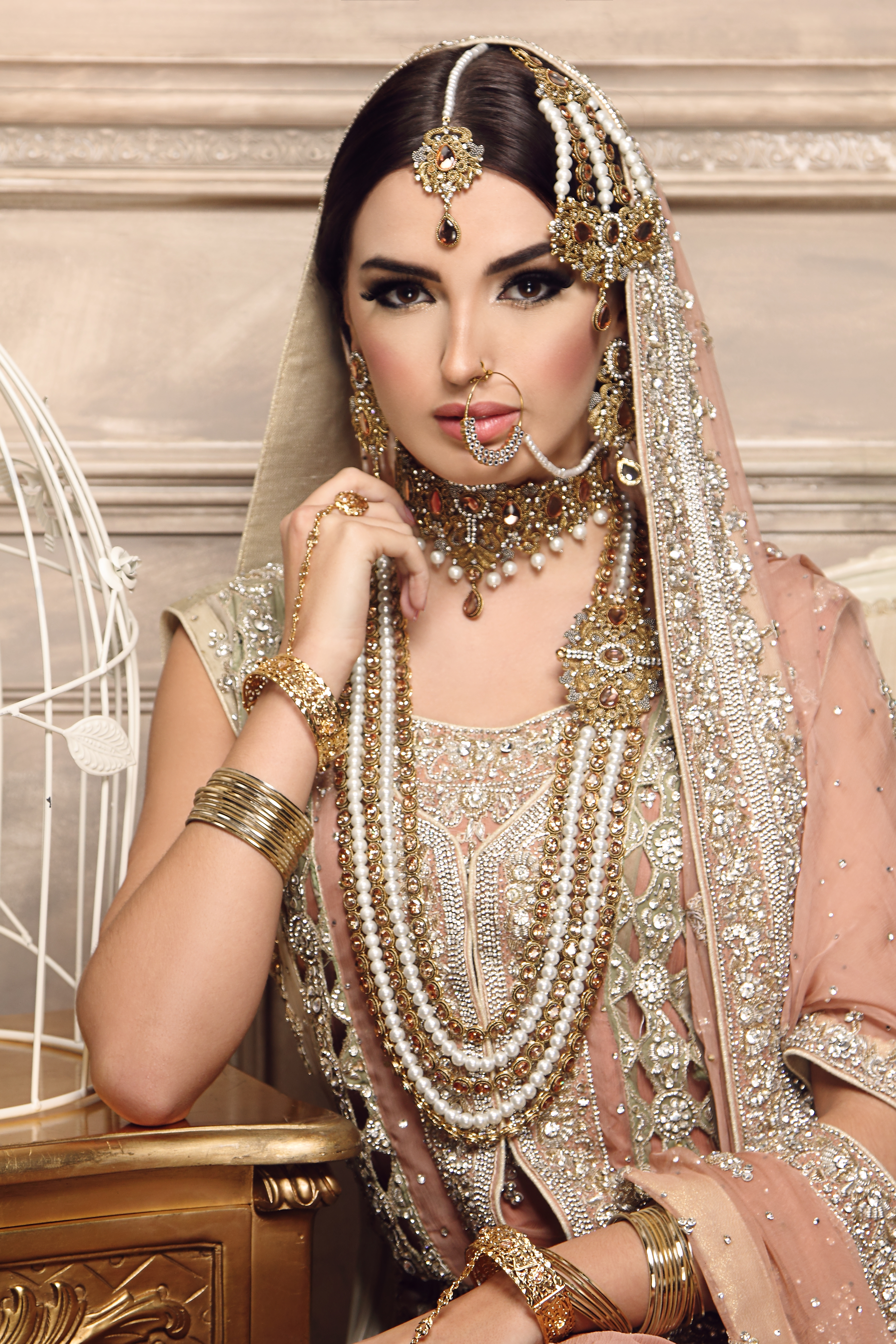 Model Wears: Antique gold plating with Peach stones
