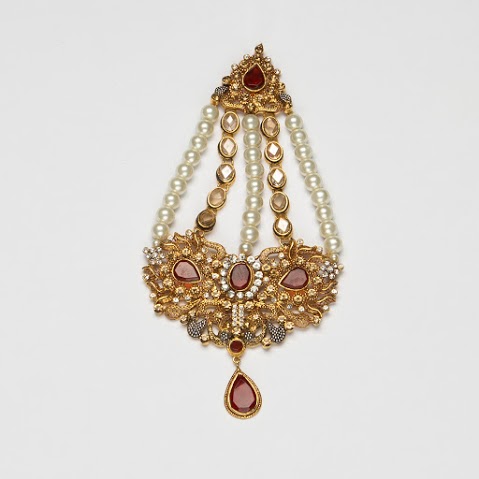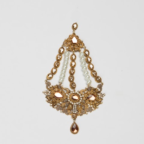 Image shows:  Jhummar in ‘antique gold’ plating with ‘green stones’