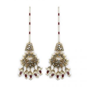 Intricate and luxurious American Diamond clawed collection with large semi precious stones and real off white pearl fringing. Pieces made on real silver.  Also available in 22k gold plating – see options below.