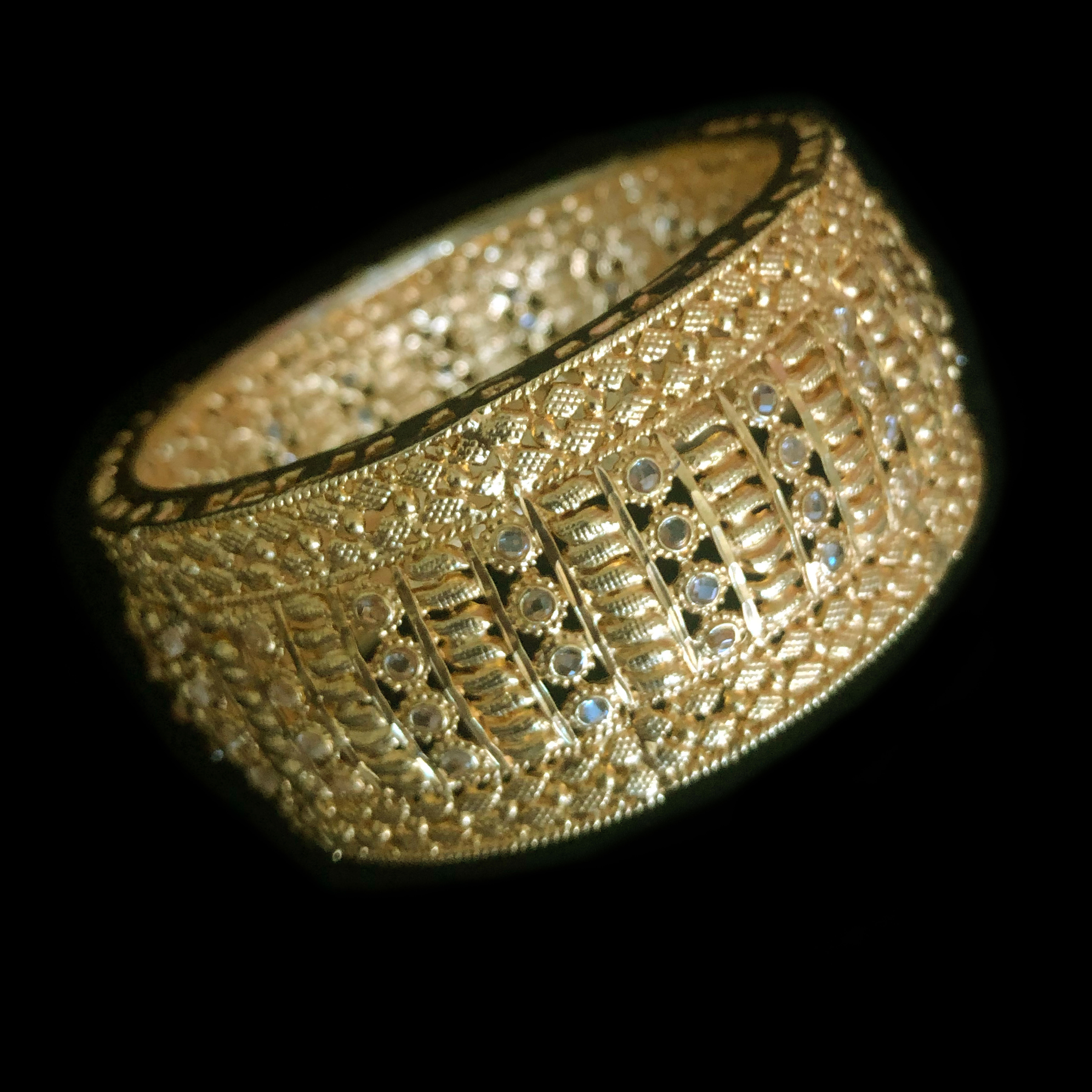Our Sahara pieces are finished in 22k gold plating oil to give you the look of traditional 24k gold. These pieces are designed in intricate silver metal and will not tarnish (jewellery care is applicable) .. currently available in gold plating, to make in a silver plate please contact us.