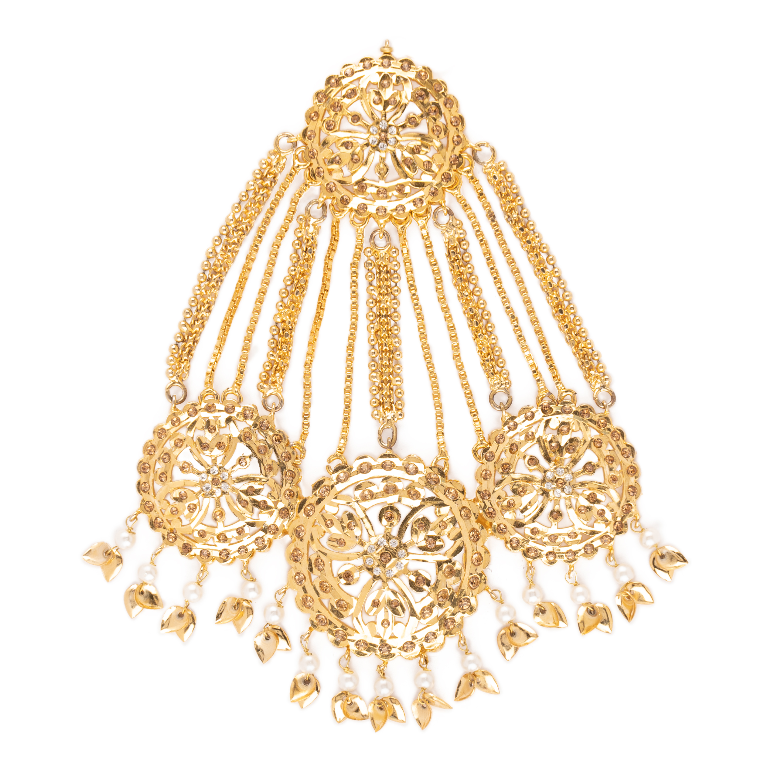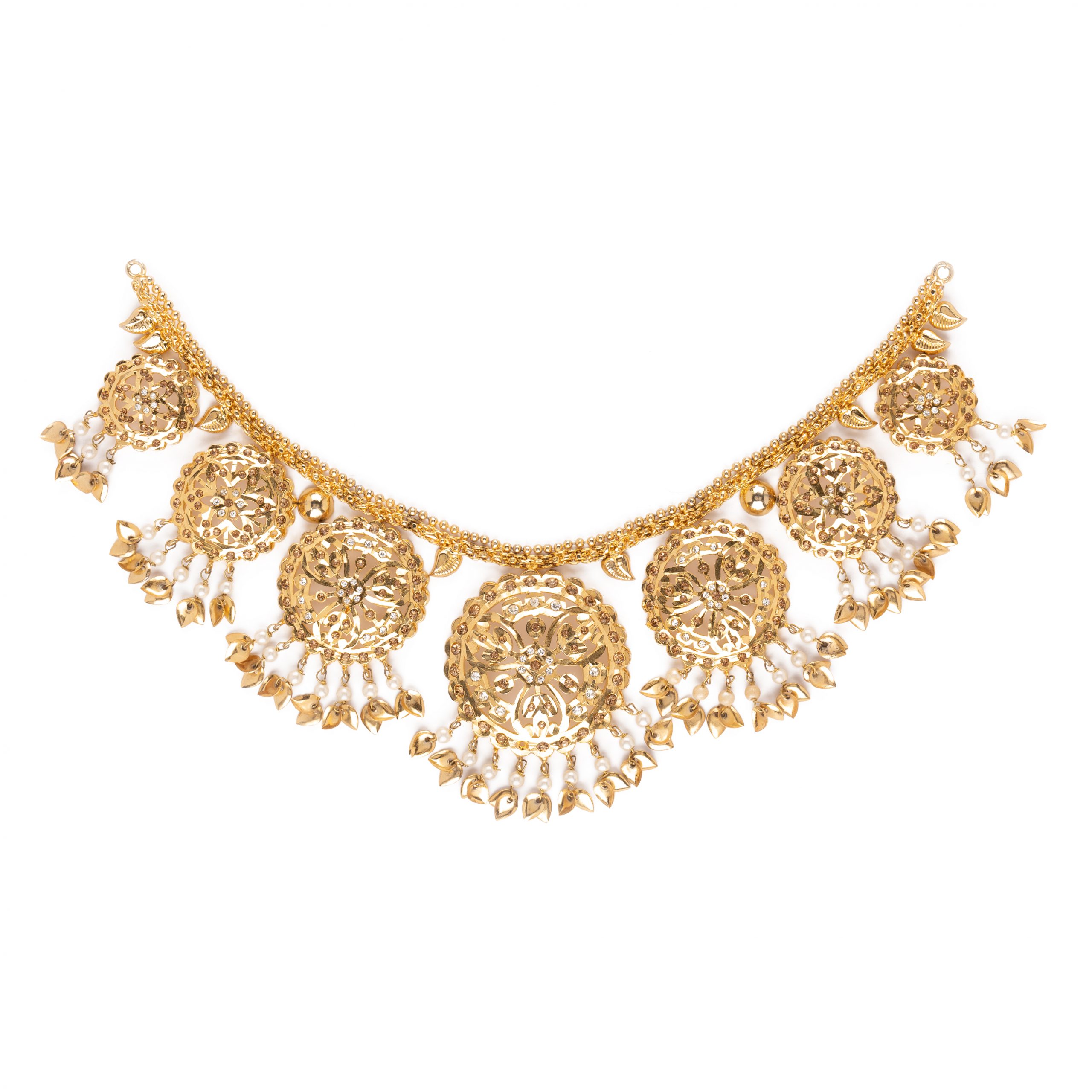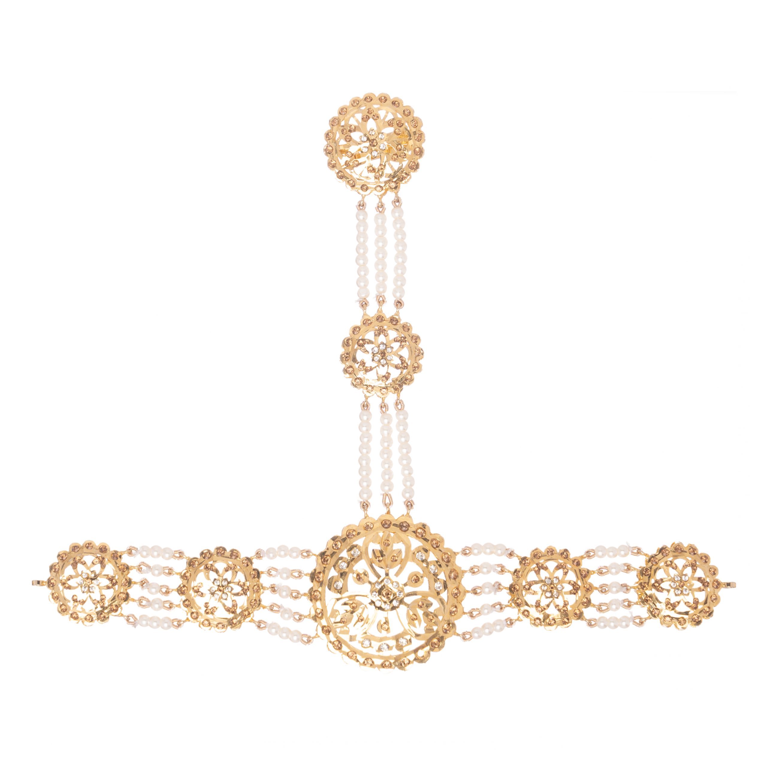 Handcrafted aari designed pieces made to replicate the real sona jewellery at a fraction of the price. All pieces are 22 carat on shiny light plated gold saluting the mughal bygone era.