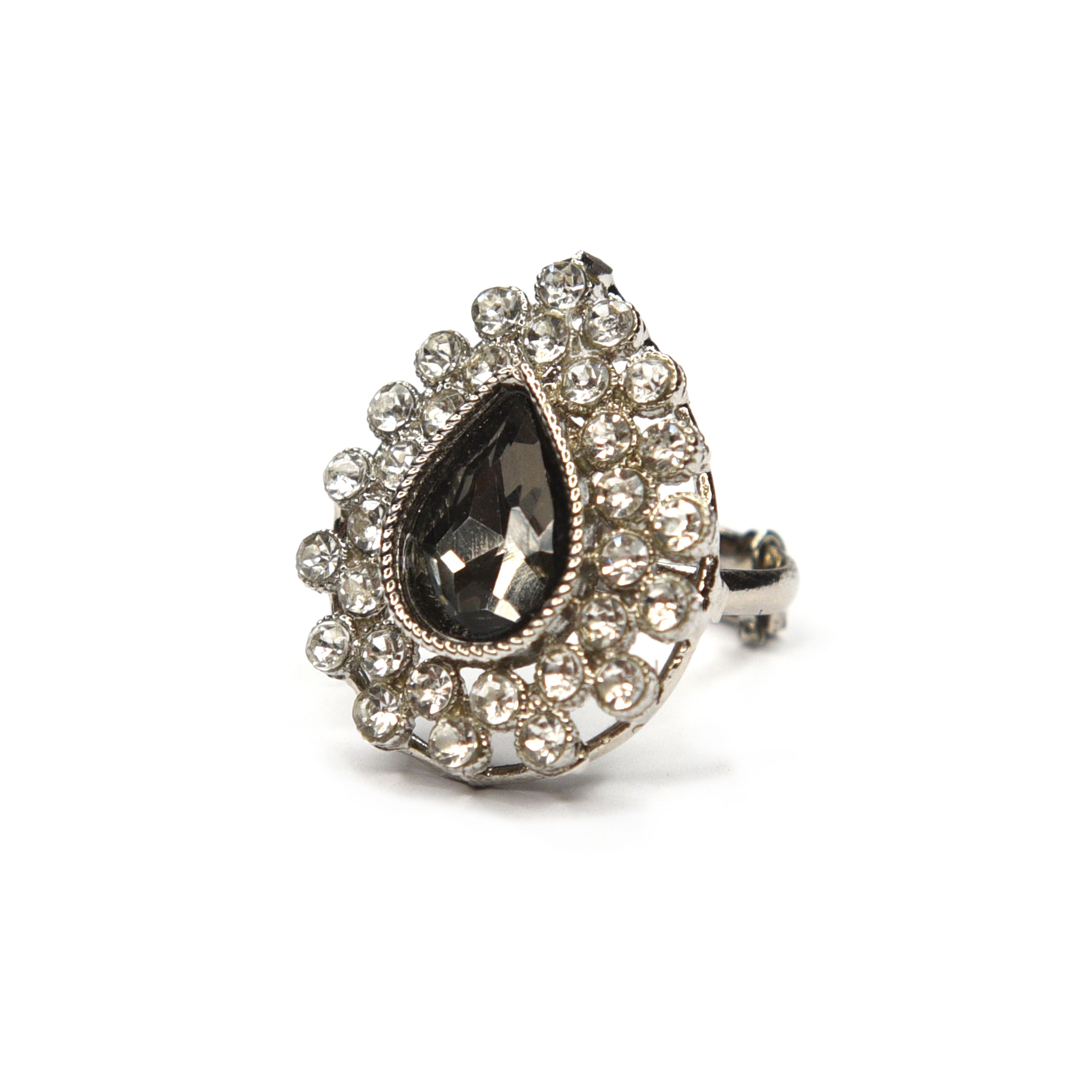 Image shows large stone as ‘Charcoal Grey’ on ‘Gunmetal Silver’ with finer stones as ‘Clear’